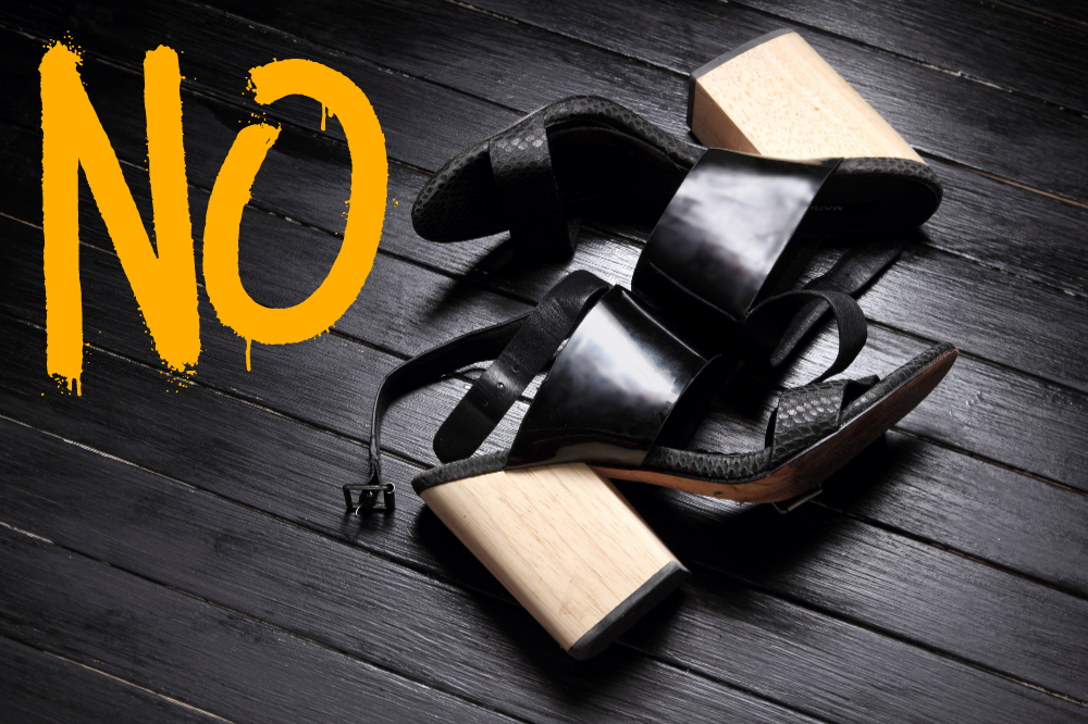 The Fourth Tip is to NOT wear heels that have a PLATFORM. I know it sounds like a platform can be more stable. But you want to make sure that your shoes have a small thin layer and that is because when you are dancing in heels you want to make sure that your feet can feel the ground underneath. Dancing and learning heel techniques requires that your body have a sense of where it is in space. If you are not able to feel the ground you are more prone to slipping and falling. Heels without platforms also typically are more flexible so that when you are trying to point your feet you can create nice lines instead of having a hunky brick at the end of your leg.