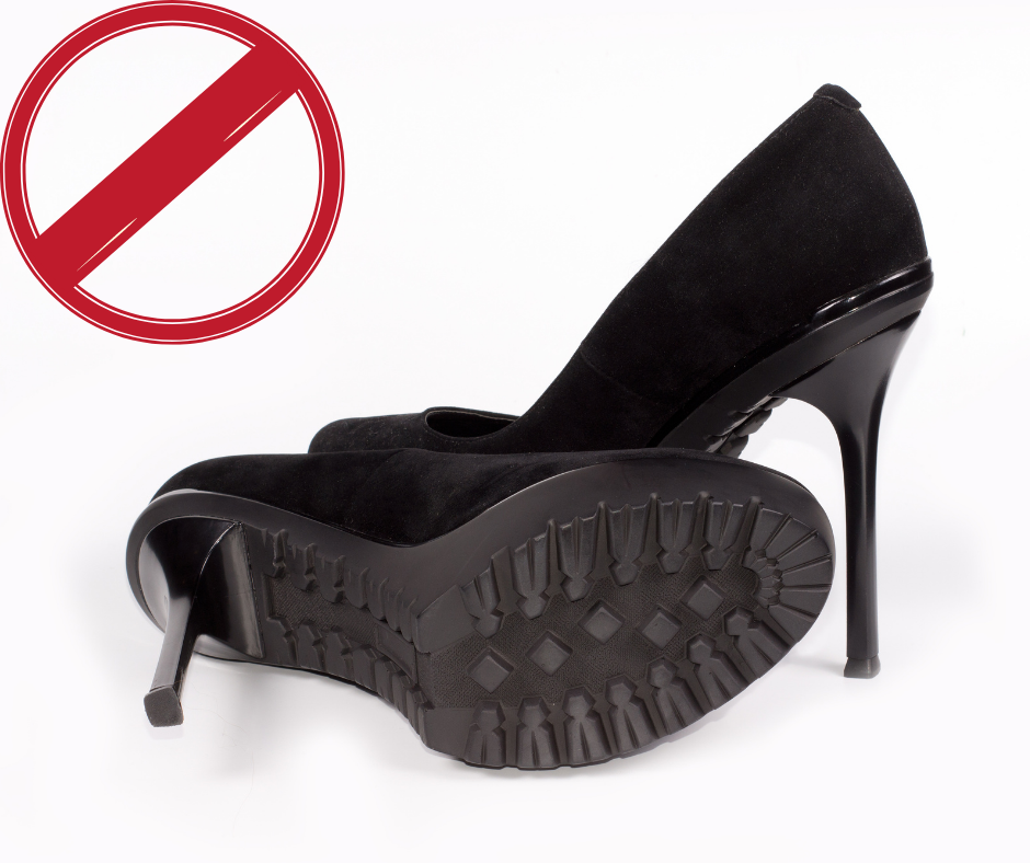 The Third Tip is “Do Not” wear thick rubber soles! Although it sounds like it's gonna help you slip less on the floor. It actually can make you stick to the floor. Oftentimes you're going to be dancing on sprung floors that are either wooden or Marley. Having a rubber shoe can make you stick to the floor more and if that happens then there's more chance of you twisting your ankle. When you're picking dance heels, make sure you pick the heels that have a smooth bottom on them, preferably SUEDE bottom, because it’s soft and bendy. So that you can have more freedom and mobility when you are trying to turn and execute all these extra moves that we like to do in a heels class.